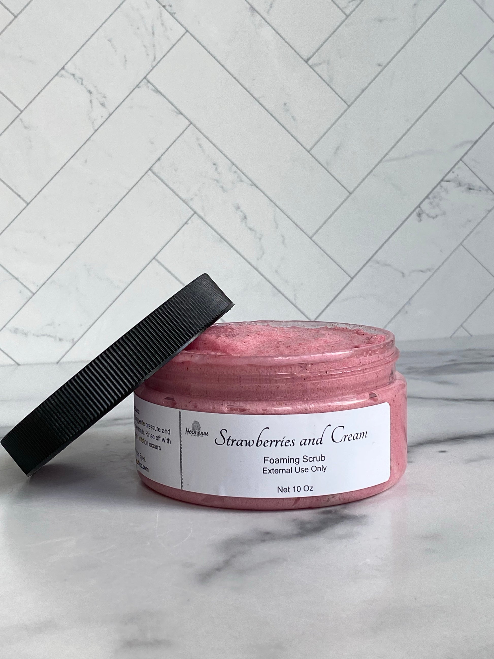 This foaming body scrub contains raw sugar, Himalayan pink salt and apricot seed powder for added exfoliating properties.